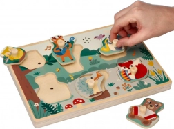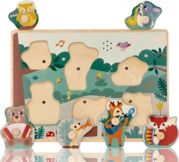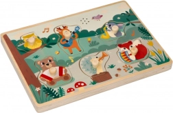Ova drvena zvučna slagalica s motivom šume donosi djeci prvi susret s glazbenim instrumentima na razigran način. Svaki šareni dio sa životinjom ima praktičnu ručku za lako držanje, a nakon umetanja na pravo mjesto oglašava se odgovarajući zvuk koji motivira na ponovnu igru i istraživanje.