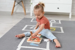 Umetanje dijelova u odgovarajuće izreze jača prstiće, koordinaciju oko–ruka i strpljenje. Idealno za male ručice od 18 mjeseci.