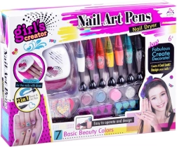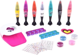Kreativni set za manikuru i pedikuru za djecu donosi sve što je potrebno za originalno ukrašavanje noktiju: 7 šarenih flomastera/lakova s preciznim vrhom i kistom, šljokice, naljepnice, separatore prstiju i praktični mini sušilo na baterije. Sjajna zabava za kućni SPA i druženja s prijateljicama.
