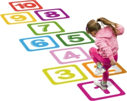 Skakanje po numeriranim poljima poboljšava motoriku i ravnotežu – savršeno za igru školice.