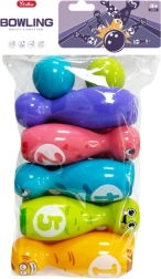 U setu je 10 kegli, svaka ima drugačije lice i u različitim bojama, što privlači dječju pažnju i potiče ih na igru. Osim toga, kegle imaju spljoštene vrhove, što omogućuje slaganje jedne na drugu i stvaranje šarenih kula. Tako se dijete može veseliti ne samo tradicionalnoj igri s keglima, već i kreativnom slaganju kegli.