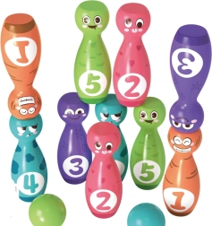 Set uključuje i dvije šarene kugle, koje omogućuju klasičnu igru s keglima. Nadalje, kegle su označene brojevima, dodajući edukativni element koji pomaže djetetu u učenju brojanja i prepoznavanja brojeva. Ovo je odličan oblik zabave koja će razveseliti svako dijete!