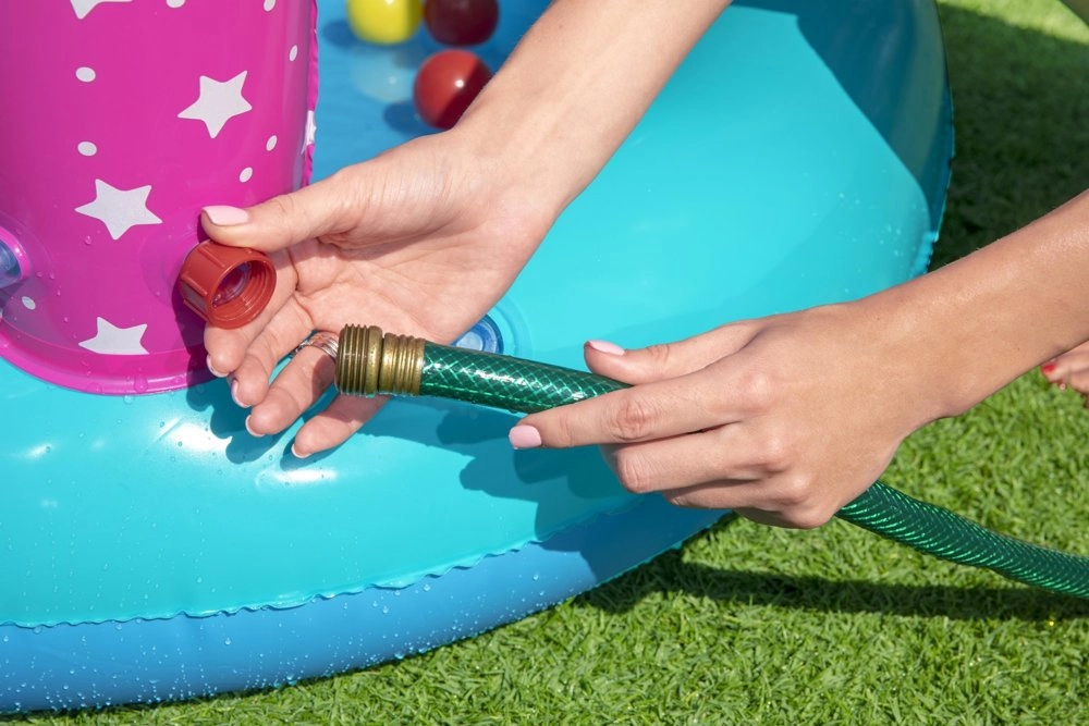 Sastavni dio pakiranja su i zabavni dodaci – 6 loptica, bacački prsten u obliku zvijezde i čarobni štapić, s kojima djeca mogu stvoriti vlastite igraće scenarije. Praktični ispusni ventil olakšava održavanje i spremanje nakon kupanja.