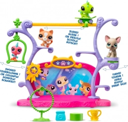 Dobrodošli svim obožavateljima omiljenih životinja Littlest Pet Shop! Dolazi Generacija 7 s više od 65 novih prijatelja u kolekciji. Ovaj set za igru uključuje francuskog buldoga i ptičicu, koji su spremni za natjecanje u talentu. Pridružite se virtualnom svijetu Littlest Pet Shop zahvaljujući posebnom kodu koji otključava ekskluzivne likove i iznenađenja.