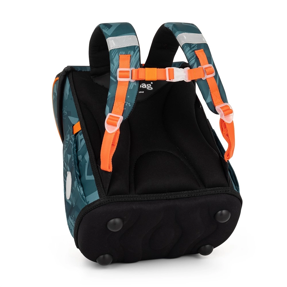 Sigurnost povećavaju reflektirajući elementi i metalna kopča s odraznom pločicom. Čvrsto dno štiti sadržaj od prevrtanja i prosipanja, dodatne kuke omogućuju bolje učvršćivanje naramenica. Zahvaljujući širokim podstavljenim naramenicama aktovka ravnomjerno raspoređuje težinu i štedi dječja ramena.
