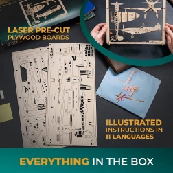 Ugears Lovac avion nudi iznimno iskustvo zahvaljujući svojim pokretnim elementima, koji prikazuju precizne detalje zrakoplova iz Drugog svjetskog rata. S ovim setom ćete otkriti kako za sastavljanje proizvoda nisu potrebni alati ni ljepilo. Dovoljno je nekoliko minuta i upute koje dolaze uz svaki set.