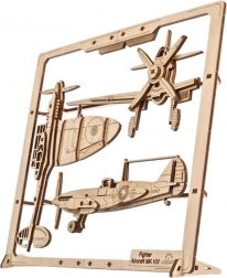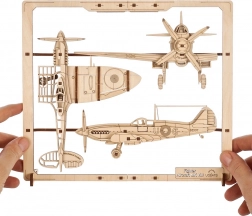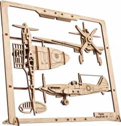 Ugears Lovac avion je dio inovativne serije 2,5D mehaničkih setova. Radi se o povijesnom modelu slavnog zrakoplova Spitfire iz 40-ih godina, koji će postati prekrasan dodatak svakom interijeru, smješten na zid ili stol zahvaljujući vlastitom okviru.