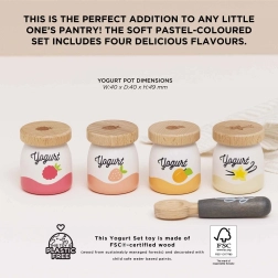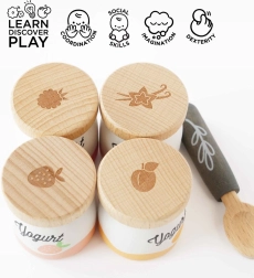 Započnite dan sa setom drvenih jogurta Le Toy Van! Sadrži četiri simpatične makete jogurta s okusima breskve, vanilije, maline i jagode. Drveni dijelovi potiču razvoj fine motorike i djeci omogućuju istraživanje važnosti zdrave prehrane.