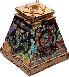Pretvorite drvenu piramidu u upečatljivo dizajnersko središte. Ovaj drugi sloj s temom Astečko Carstvo elegantno prekriva izvorne motive i vašem modelu daje izražajan, šareni izgled nadahnut starovjekovnom Mezoamerikom. Proširenje je namijenjeno isključivo za PIRAMIDU SUNCA i ima isključivo dekorativnu svrhu – ne utječe na mehanizam niti na rješenje zagonetke.