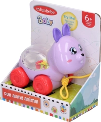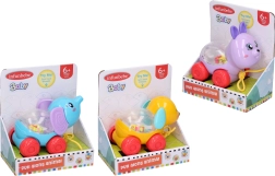 Preslatka povlačna životinjica na uzici veličine 12 cm razveselit će svako dijete. Igračka je na kotačićima, a pri povlačenju naprijed se na leđima životinjice pokreću kuglice. Na izbor su 3 varijante – zec, slon ili pas.