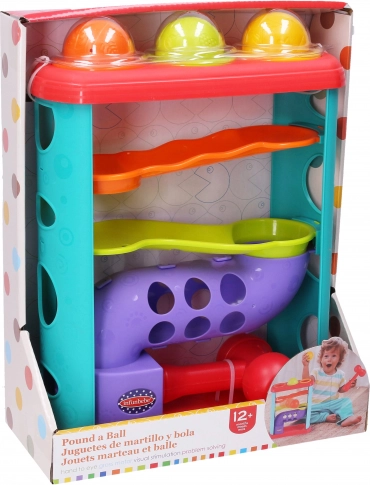 Zabijajuća kuglična staza s čekićem, 3 kuglice, veličina oko 32 cm. Razvija motoriku i koordinaciju, idealna igračka za predškolsku djecu.