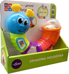 Vesela zvečka u obliku gusjenice od Maamaa razveselit će svaku bebu. Nudi nekoliko osjetilnih poticaja – okretni dijelovi, ugodno zveckanje i treštanje, piskajući gumbić te sigurno zrcalce. Idealna veličina 16 cm pristaje malim ručicama i potiče razvoj fine motorike te vizualne i slušne percepcije.