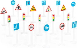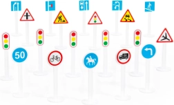 - Realistična izrada – Set čine plastični znakovi koji vjerno oponašaju stvarne prometne znakove.