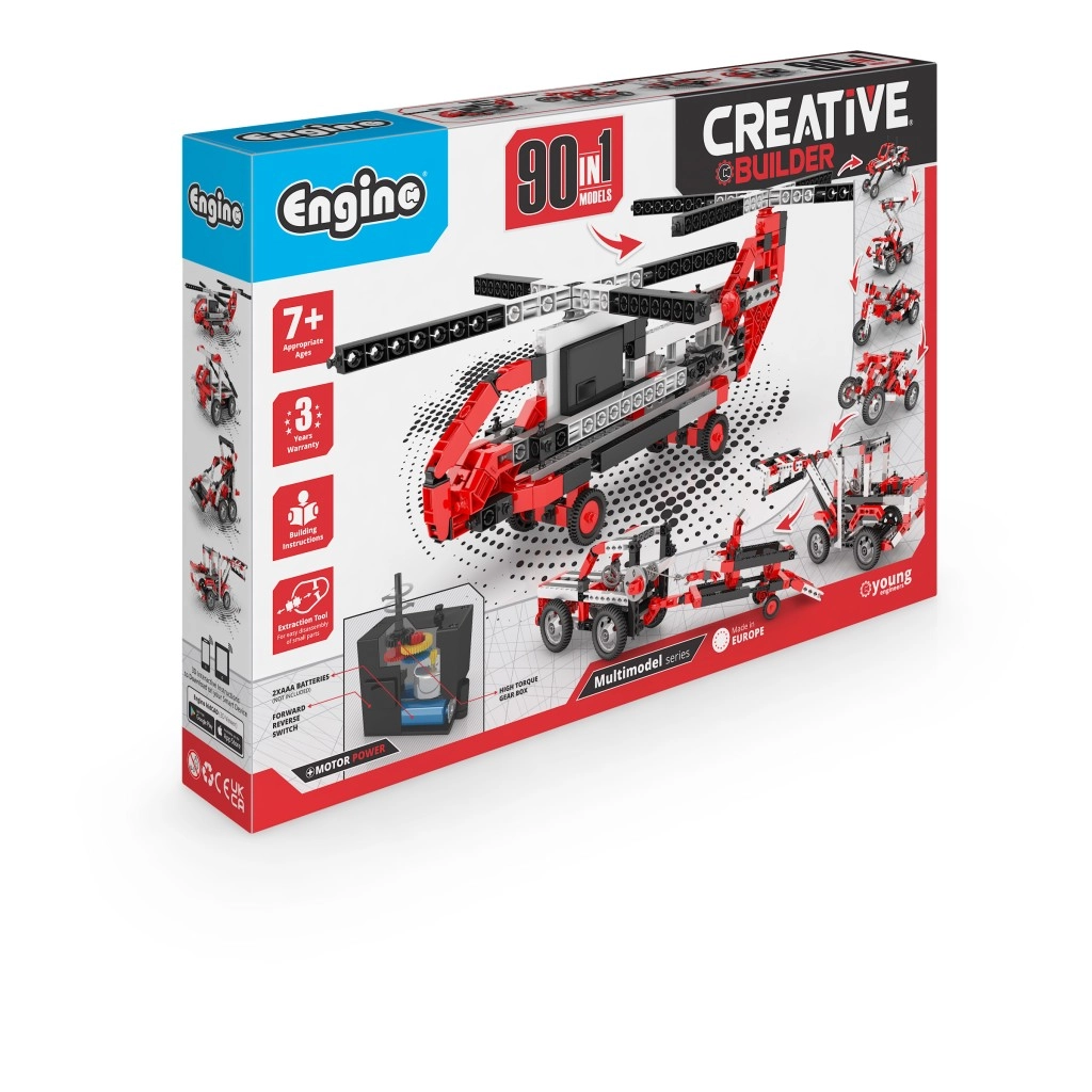 Otkrijte beskonačne mogućnosti slaganja s konstrukcijskim setom ENGINO Creative Builder 90 u 1 s motorom za pogon modela. Iz jednog seta složit ćete čak 90 različitih modela, od autića i motora do aviona i helikoptera. Zahvaljujući interaktivnoj aplikaciji kidCAD 3D možete modele okretati, zumirati i učiti korak po korak. Prikladno od 7 godina, kompatibilno s ostalim ENGINO setovima.