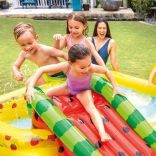 Ovaj bazen ističe se svojim atraktivnim dizajnom s motivom lubenice, koji privlači djecu na vodene radosti.