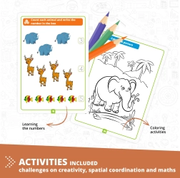 Engino konstruktor Učimo se – divlje životinje nudi djeci mogućnost ne samo slaganja do 5 različitih modela, već i otkrivanja zanimljivih činjenica o životinjama. Učite kroz zabavne aktivnosti poput bojanki, spajanja točaka ili vježbanja matematike, a sve je podržano aplikacijom za proširenu stvarnost (Augmented Reality).