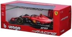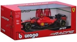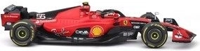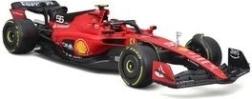 Službeno licencirani metalni model Bburago u mjerilu 1:18 vjerno prikazuje bolid Scuderia Ferrari SF-23 (2023) s startnim brojem 55. Uključena je figurica Carlosa Sainza, autentične timske boje i precizni detalji – idealno za kolekcionare i obožavatelje Formule 1.