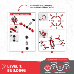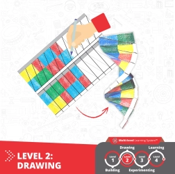 Četverorazinski koncept razvija finu motoriku, prostornu maštu i interes za prirodne znanosti. Djeca najprije sastave model, zatim ga dovrše bojanje papirnatih dijelova, isprobaju jednostavne pokuse i na kraju učvrste znanje kroz razigrano učenje.