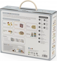 Dječji edukativni box VIGA Little Thinkers (24–36 mj) pametno je osmišljen skup drvenih igara i aktivnosti koji podržava svakodnevno otkrivanje. Zahvaljujući sigurnim materijalima, nježnim pastelnim bojama i promišljenim zadacima, djeca prirodno vježbaju preciznost pokreta, prepoznavanje uzoraka i osnove geometrije.
