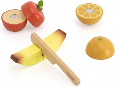 Drveno voće na čičak s nožićem razvija finu motoriku, koordinaciju i socijalne vještine kroz igru kuhara ili trgovine.
