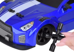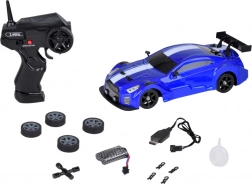 RC auto, upravljač 2,4 GHz, akumulator 7,4 V 500 mAh, set drift/terenskih guma, ključ za kotače, dozator vode, USB punjač, kopče karoserije