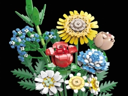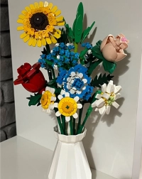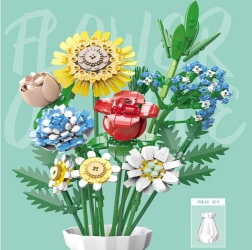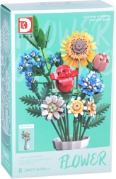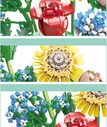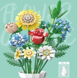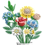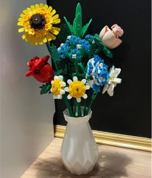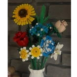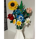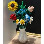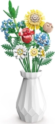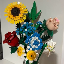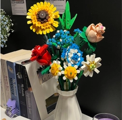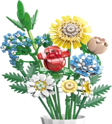 Pretvorite građevni set u dizajnersku dekoraciju. Šareni buket od građevnih dijelova uključuje suncokret, ruže, karanfil, tratinčicu, ljiljan, potočnicu i zelene dodatke (haitong listovi, cedar, trava). U pakiranju je i elegantni kremasti flakon, pa gotov buket možete odmah izložiti na polici ili stolu.