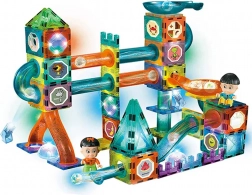 Magnetička svjetleća staza za kuglice uzbudljiva je igračka za djecu koja pruža mnogo sati zabave. Kombinira građevne blokove s magnetima i stazu za kuglice, što omogućuje razvoj manuelnih vještina, kreativnosti i eksperimentiranja. Djeca tako mogu neprestano stvarati nove staze i konstrukcije.