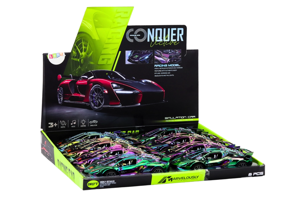 Otkrijte čaroliju svijeta brzih automobila s našim jedinstvenim sportskim automobilom Kameleon! Ovaj očaravajući sportski automobil san je svakog malog zaljubljenika u motorizam. Zahvaljujući jedinstvenoj kameleonskoj karoseriji, mijenja boju ovisno o svjetlu i kutu gledanja, što ovoj igrački daje futuristički izgled.