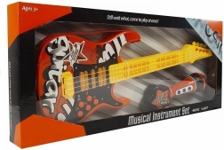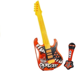 Otkrijte zabavnu električnu gitaru zajedno s mikrofonom, savršeno dizajniranu za male glazbene entuzijaste. Ova gitara izrađena je od kvalitetne plastike i dolazi u blistavoj crveno-žutoj izvedbi. Gitaru krase stilizirani svjetlosni efekti i interaktivni gumbi koji omogućuju jednostavno upravljanje raznim pjesmama i zvukovima.