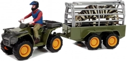 - Kvadricikla, odvojiva prikolica/transporter s otvarajućim stražnjim vratima, figurica vozača, figurica zebre