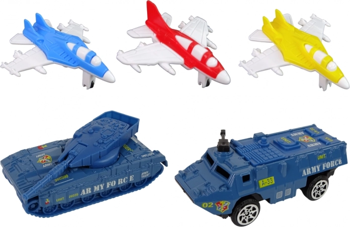 Tri šarena lovca, tenk na gusjenicama i oklopno vozilo s metalnom karoserijom donose akciju na moru i na kopnu.