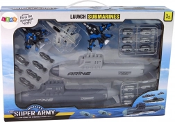Upustite se u akcijsku pomorsku bitku s kompletnim vojnim setom za djecu! Dvije realistične podmornice s kotačima za lako kretanje, tri lovačka zrakoplova i mnoštvo projektila osigurat će sate zabave i strateške igre. Podmornica ima funkcionalni bacač projektila – jednostavno napunite, nategnite i slijedi akcijski hitac! Cijeli set izrađen je od izdržljive plastike, ima CE certifikat i idealan je za male ljubitelje vojske od 3 godine naviše.