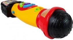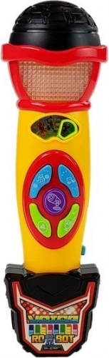 Pritiskom zelenog gumba dijete lako snimi do 20 sekundi i svoju snimku odmah reproducira. Plavi gumb s notama pokreće melodije, središnji gumb „mikrofon” dodaje glazbenu pratnju i pljesak za autentičnu atmosferu pozornice. Igračka prirodno razvija maštu, koncentraciju i koordinaciju.