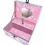Otkrijte očaravajuću glazbenu kutiju za nakit koja svako otvaranje pretvara u mali ritual radosti. Nakon podizanja poklopca zazvuči klasična melodija, a unutra se počne okretati preslatka figurica jednoroga. Zahvaljujući ugrađenom ogledalcu djeca se mogu diviti odrazu i imati svoje dragocjenosti uvijek pri ruci.