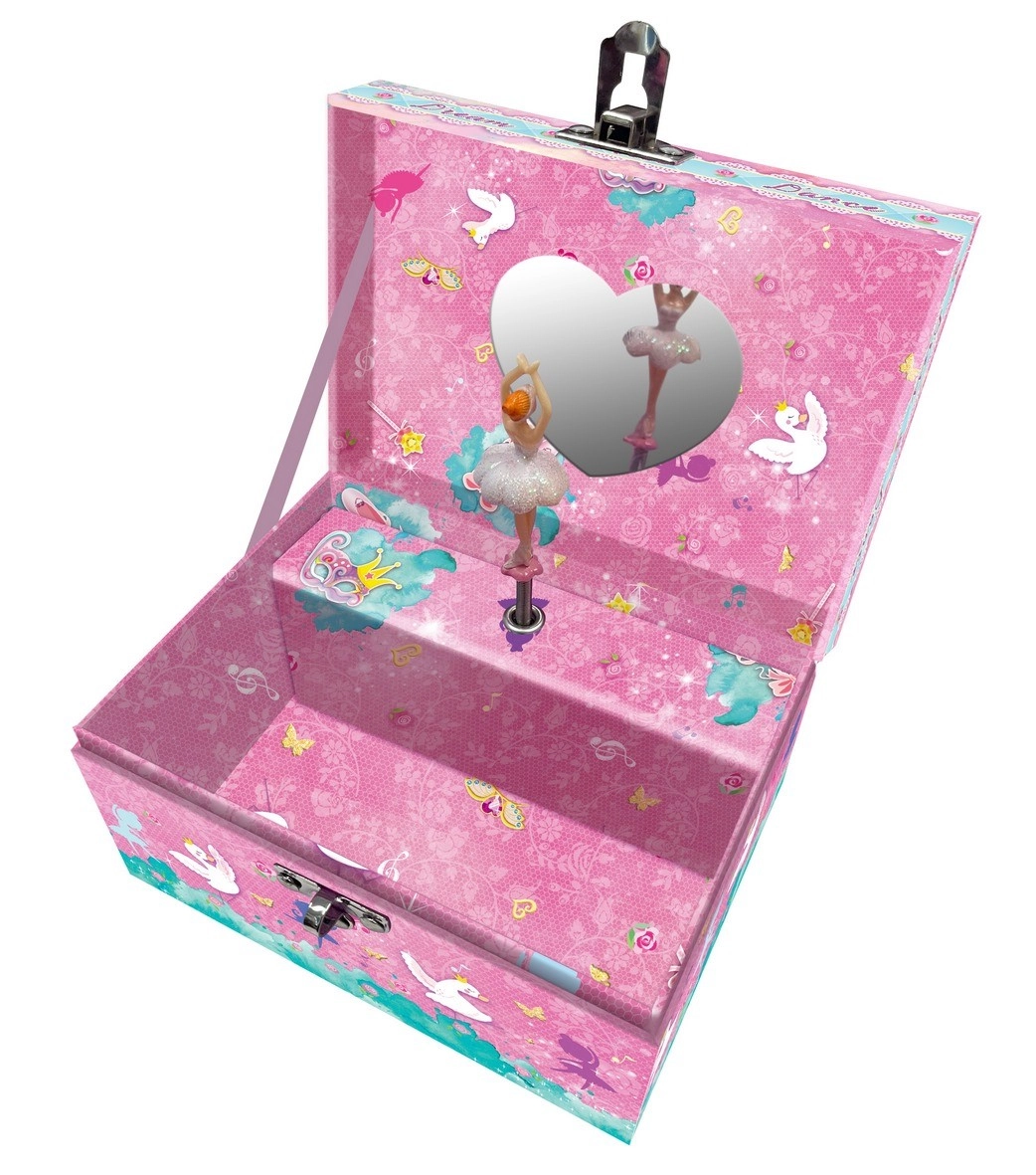 Čarobna glazbena kutijica za nakit Pecoware Sukienka idealna je za male princeze. Nakon otvaranja figurica se zavrti i začuje se klasična melodija. Kutijica ima praktično ogledalce i prostor za sitnice. Radi na mehaničko navijanje – bez baterija.