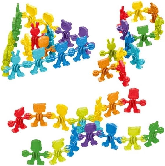 Figurice se mogu međusobno povezivati pa djeca mogu stvarati krugove, lance i jednostavne konstrukcije – zabavan način za razvoj motorike i kreativnosti.