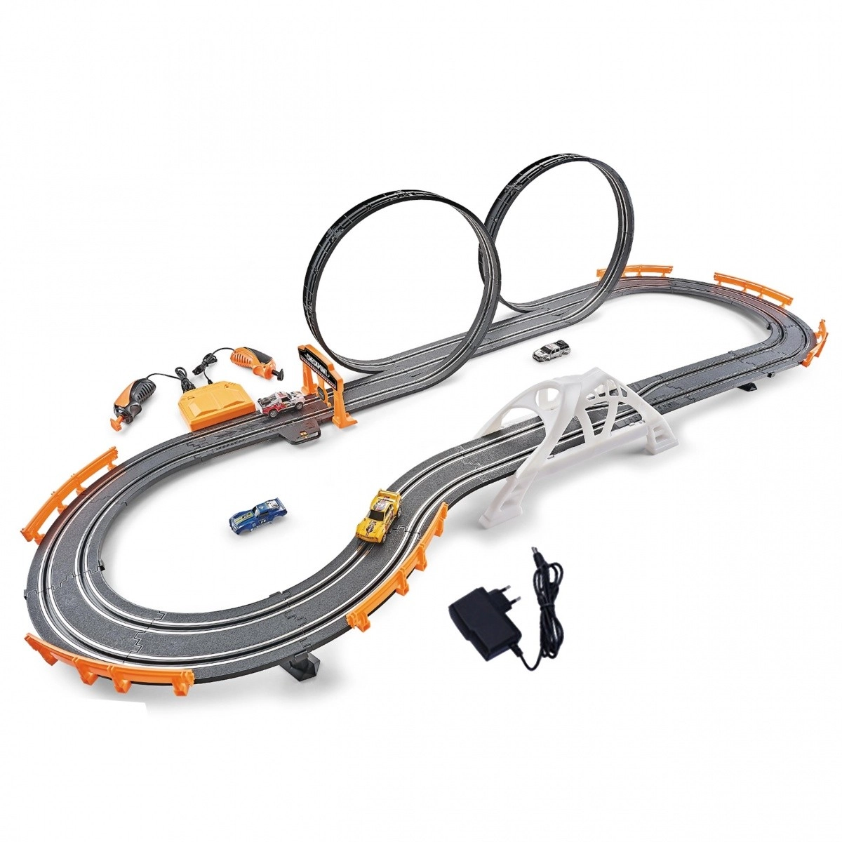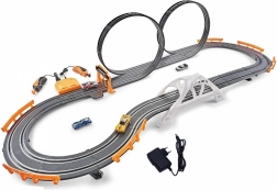 Otkrijte nevjerojatnu trkaću stazu koja ukupno mjeri 520 cm i pruža dinamičnu i uzbudljivu zabavu za svakog igrača. Set uključuje dva automobila s mogućnošću izmjene karoserije, što omogućuje prilagodbu izgleda vozila prema vlastitim preferencijama.