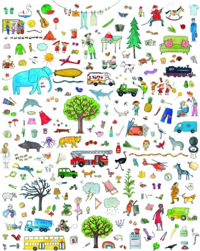 Ova velika slikovna knjiga idealan je priručnik za predškolce i mlađu školsku djecu. Zahvaljujući šarenim, “čitljivim” ilustracijama, djeca uče prepoznavati predmete, imenovati ih i postupno pamtiti i njihov tiskani oblik. Knjiga na zabavan način razvija rječnik i podržava prve korake u čitanju i pisanju.