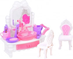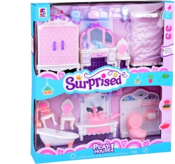 Ovaj bogato opremljen set namještaja za kućicu za lutke nudi sve potrebno za stilsku spavaću sobu i funkcionalnu kupaonicu. Elegantni krevet s dekorativnim okvirom, toaletni stolić s ogledalom, garderobni ormar te kupaonski dodaci poput kade, WC-a i umivaonika nadahnjuju djecu na duge sate maštovite igre.
