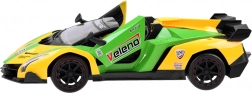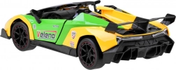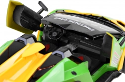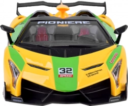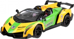 Stilski trkaći model u atraktivnim bojama nudi aerodinamičnu plastičnu karoseriju i detalje koji pojačavaju realističan doživljaj vožnje. Upravljač s volanom dobro leži u ruci djeci i odraslima te omogućuje precizno upravljanje uključujući daljinsko otvaranje vrata.