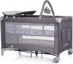Sadržaj pakiranja: sklopivi krevetić, druga razina s mekom podlogom, podloga za previjanje, pretinac/organizator, viseći luk s 3 plišane igračke, transportna torba.