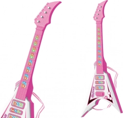 Zabavna dječja električna gitara u ružičastoj boji donosi svjetlosne efekte, unaprijed snimljene melodije i rameni remen za udobno sviranje u stojećem položaju. Lagana konstrukcija i dimenzije prilagođene malim rukama potiču kreativnost, ritam i prve korake u svijetu glazbe.