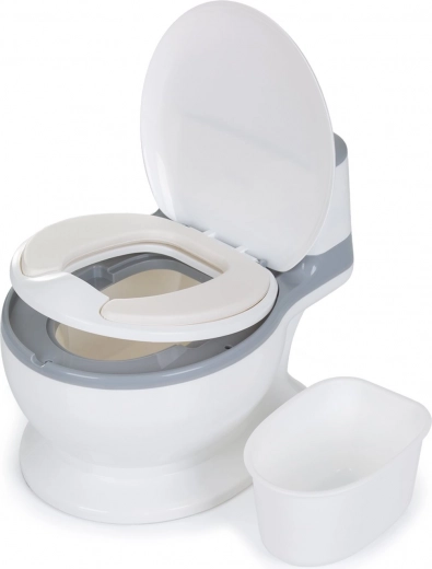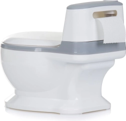 Realistična dječja kahlica u stilu pravog WC-a olakšava prijelaz na veliku školjku. Nudi mekano sjedalo, zvuk ispiranja, pretinac za papir i jednostavno čišćenje. Idealno za djecu od 1,5 do 4 godine s težinom do 20 kg.