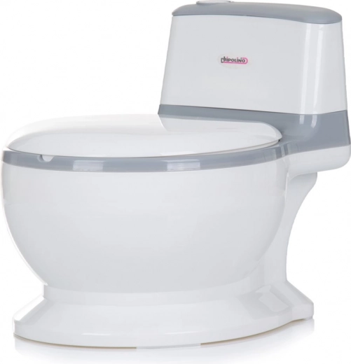 Kahlica Chipolino Lux Grey izgleda i ponaša se kao prava zahodska školjka, pa djeci pomaže prirodno usvojiti toaletne navike. Realan zvuk ispiranja motivira i uljepšava trening, dok mekano sjedalo pruža udobnost i sigurnost pri sjedenju.