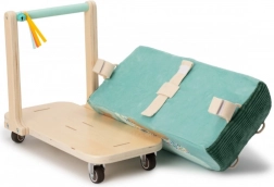 Praktična konstrukcija kombinira čvrstu drvenu bazu i udobno tekstilno sjedalo s površinom koja se lako čisti. Odvojiva torbica prima sitnice za put, a kada djeca narastu, sjedalo se jednostavno skine i pretvori u meku vreću za sjedenje za odmor.