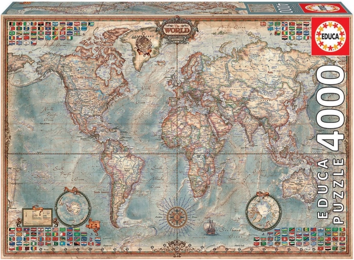 Složite globalnu političku kartu s puzzlom Educa koji sadrži 4000 dijelova. Savršen poklon za ljubitelje geografije i slaganja puzzli.