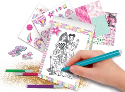 Sadržaj seta osmišljen je tako da potiče finu motoriku, strpljenje i maštu. Bojanke s BARBIE motivima nadopunjuju naljepnice i svjetlucavi kamenčići koji crtežima daju originalan izgled.