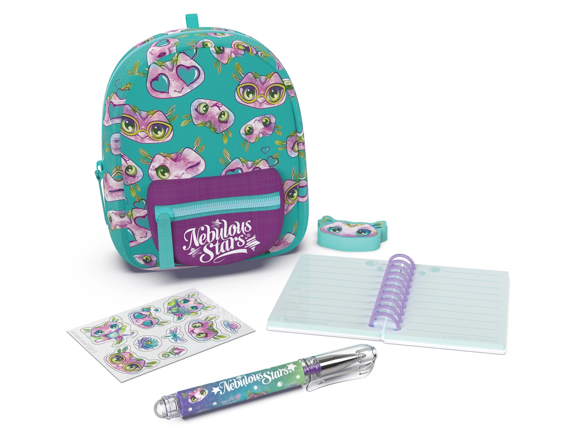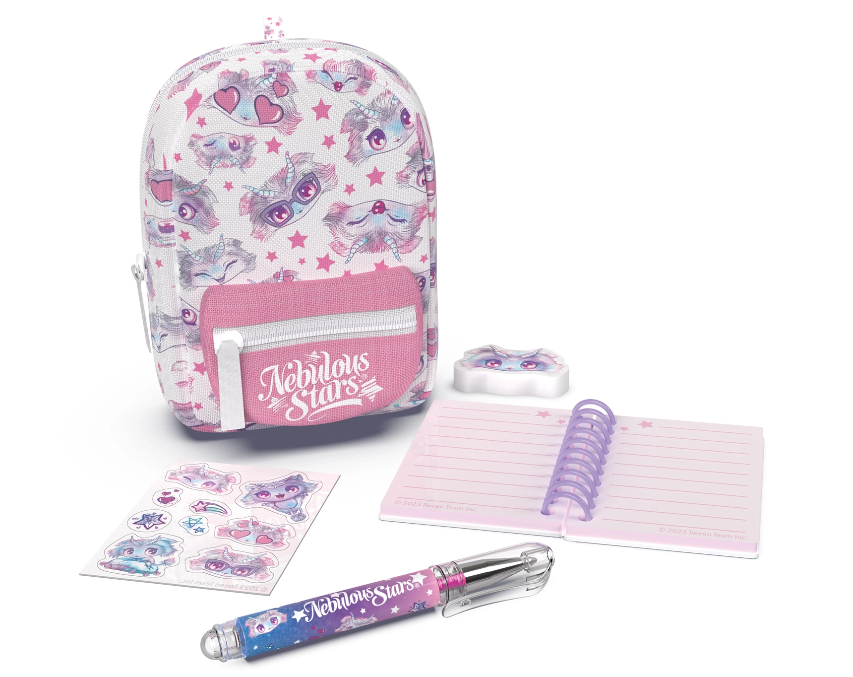 - Sve u jednom: crtovana bilježnica, višebojna kemijska olovka/kemijska, gumica, naljepnice i privjesak.