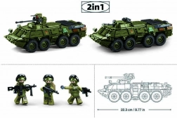 Građevna igračka Sluban BTR-80AS nudi mogućnost sastavljanja detaljnog modela vojnog vozila u čak dvije varijante. Kombiniranost s drugim igračkama znači da se setovi mogu proširiti i stvarati opsežnije građevne projekte. Svaka igračka sadrži 619 dijelova i 4 figurice, što donosi sate zabave i stvaranja.