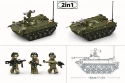 Sluban konstrukcijski set modela tenka BMD-2S u mjerilu 1:35 donosi sate zabave i učenja. Ovaj inovativni set kompatibilan je s drugim konstrukcijskim setovima na tržištu, što povećava mogućnosti stvaranja. Proizvod sadrži 530 dijelova, 3 figurice i osigurava izdržljivost zahvaljujući kvalitetnoj ABS plastici. Izradite vlastiti tenk i uživajte u realističnim značajkama kao rotacijski i nagibni dizajn.